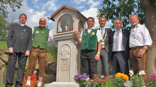 Friedberg/Steiermark. Dass die Steirer feiern können ist kein Geheimnis. Bei der „goldenen Hochzeit“ in ihrer Beziehung mit unserem Friedberg in Bayern zauberten sie jetzt vier Tage lang wieder jenen überspringenden Schwung und herzlichen Geist hervor, der vor 50 Jahren nach einem Fußballturnier lawinenartig in eine breite Städtepartnerschaft mündete. Höhepunkt der Jubiläumsfeierlichkeiten war die Aufstellung und Weihe des zwei Meter großen imposanten Marterls mit dem Ruherrle, das Bürgermeister Roland Eichmann und Partnerschaftspräsident Felix Reithemann in einem emotionalen Festakt übergaben.
